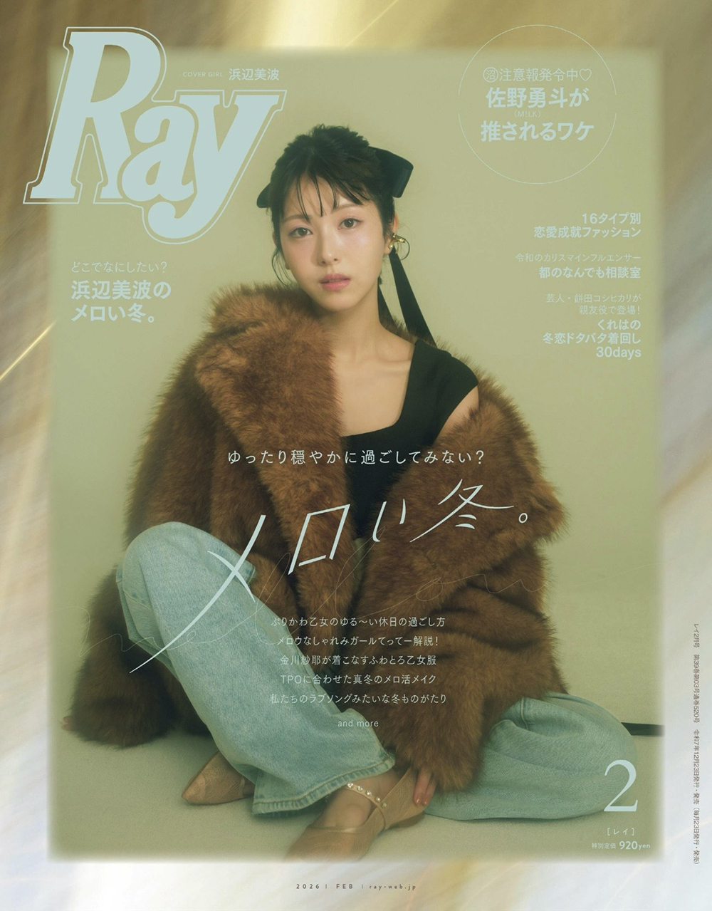 2026年 Ray 2月号の表紙、中ページにて浜辺 美波さんにROLLA'Sのデニムを着用いただきました。AWESOME NEEDS, ACOCが掲載されました。